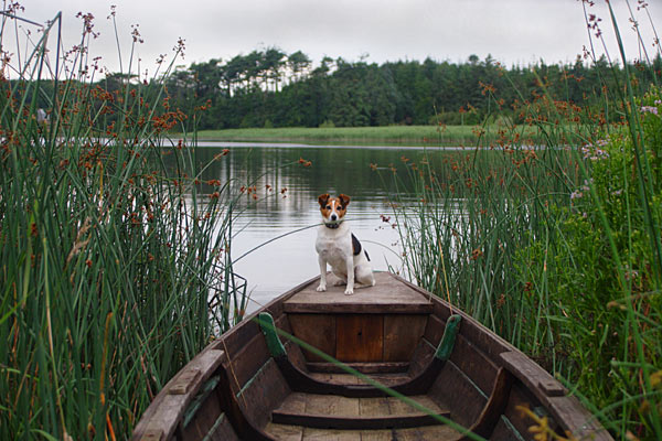 mannen stapten in een klein bootje en voeren naar de andere kant van