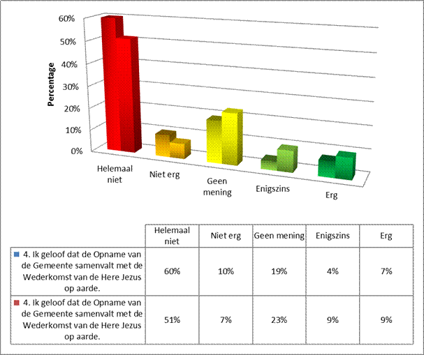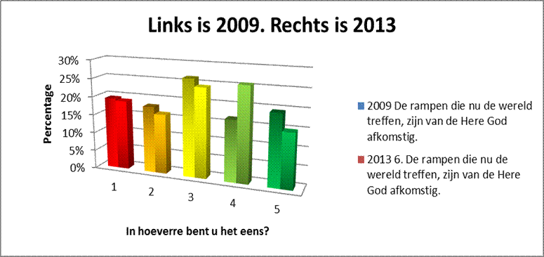 Een aantal van de stellingen die over de eindtijdtekenen gingen, heb ik ook in 2009 voorgelegd, om zo te kunnen meten in hoeverre de mening is verschoven. Meestal gaat het om enkele procenten, wat verwaarloosbaar is.