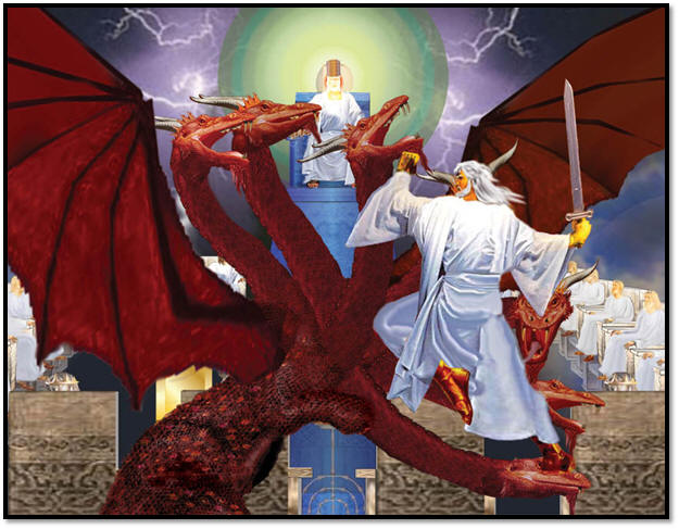 Dat zijn de draak en zijn engelen! Dus als wij nu al strijden tegen de overheden, machten, et cetera, namelijk de geestelijke boosheden in de lucht en die worden uitgebeeld zijnde de draak en zijn engelen, wie worden ons dan voorgesteld als wij Michaël en Zijn engelen lezen? Dan zijn Michaël en Zijn engelen op z’n minst de uitbeelding van Christus en de Gemeente!