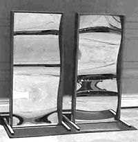 Ik denk dan aan een lachspiegel, die een vertekent beeld, dan wel een bewegend beeld geeft van de werkelijkheid. Een lachspiegel is gebogen. Zo stel ik me dat voor.